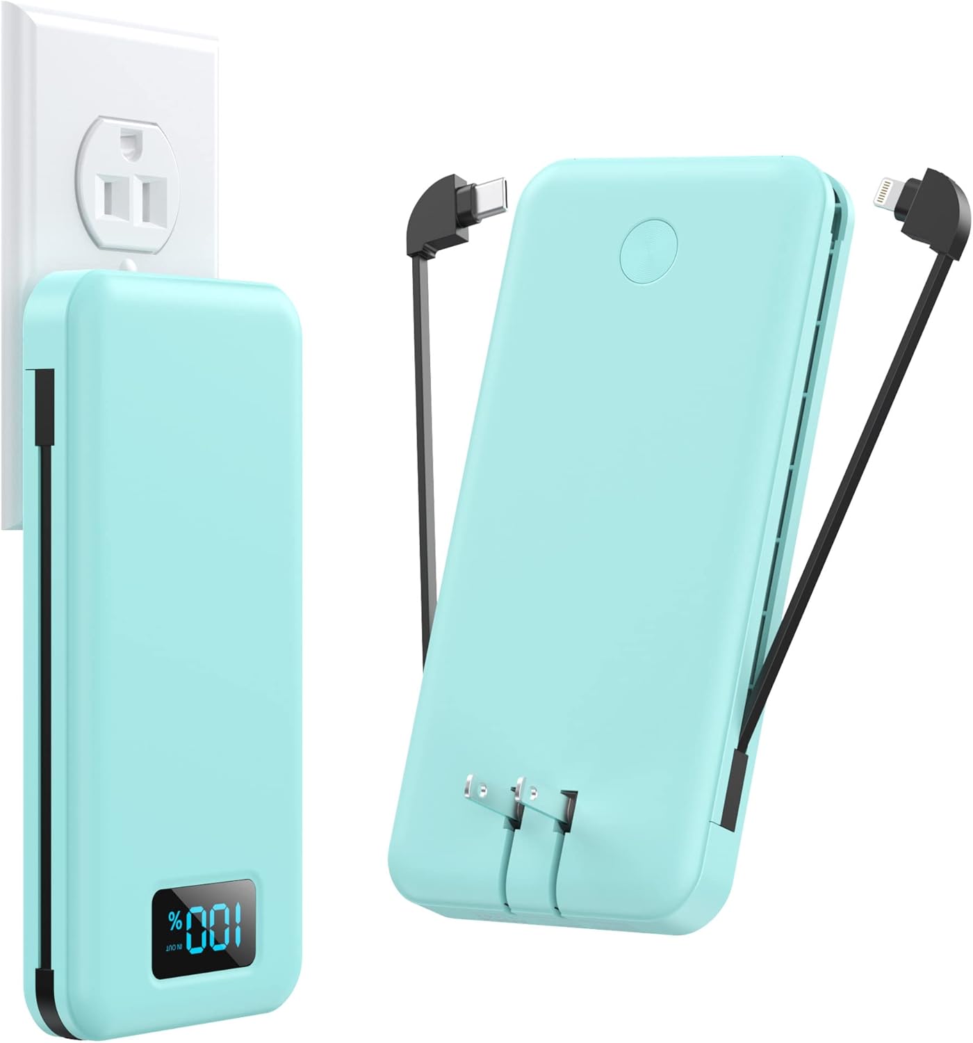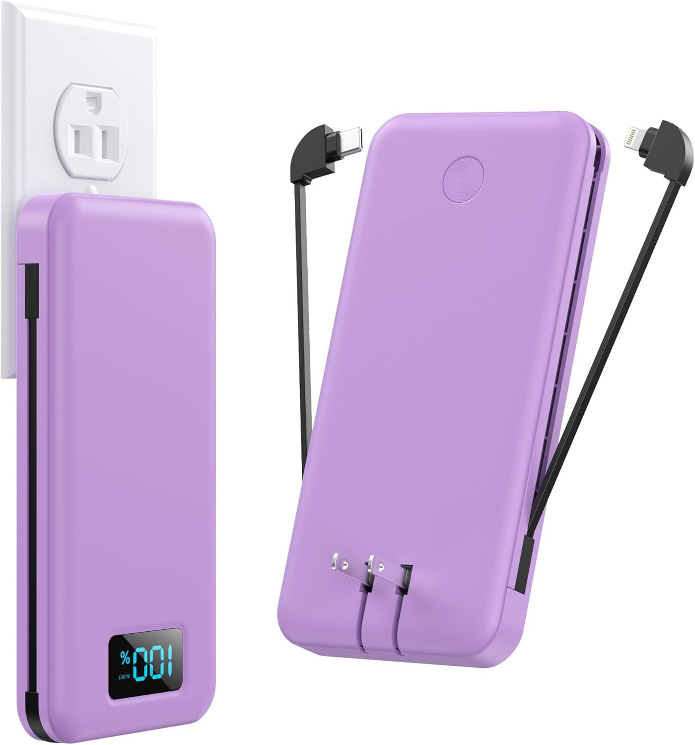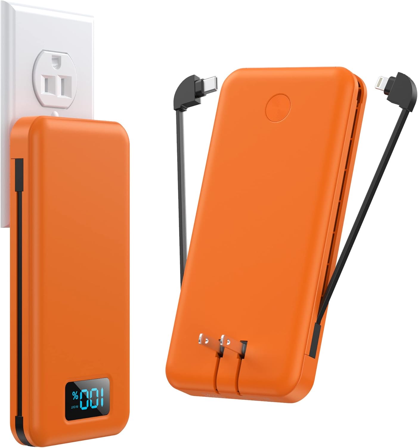 • Portable Charger with Built-in Cables & AC Wall Plug,Upgraded 13800mAh USB-C Power Bank, 4 Output LCD Display External Battery Pack Phone Charger Compatible with iPhone 16/15/14/13 Samsung Android etc